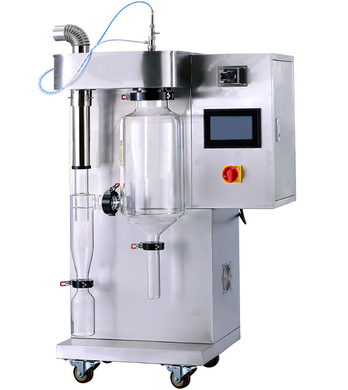 L'air chaud entre dans le séchoir sous forme spirale sous la fonction de distributeur d'air après avoir été filtré et chauffé.la matière première liquide sera pulvérisée dans les perles de brume extrêmement finesGrâce au très court temps de contact avec l'air chaud, le liquide peut être séché en poudre solide finale.Les produits finis seront déchargés en continu du fond de la tour de séchage et du séparateur cycloniqueLes déchets de l'air de la queue seront rejetés par le ventilateur d'échappement.